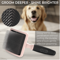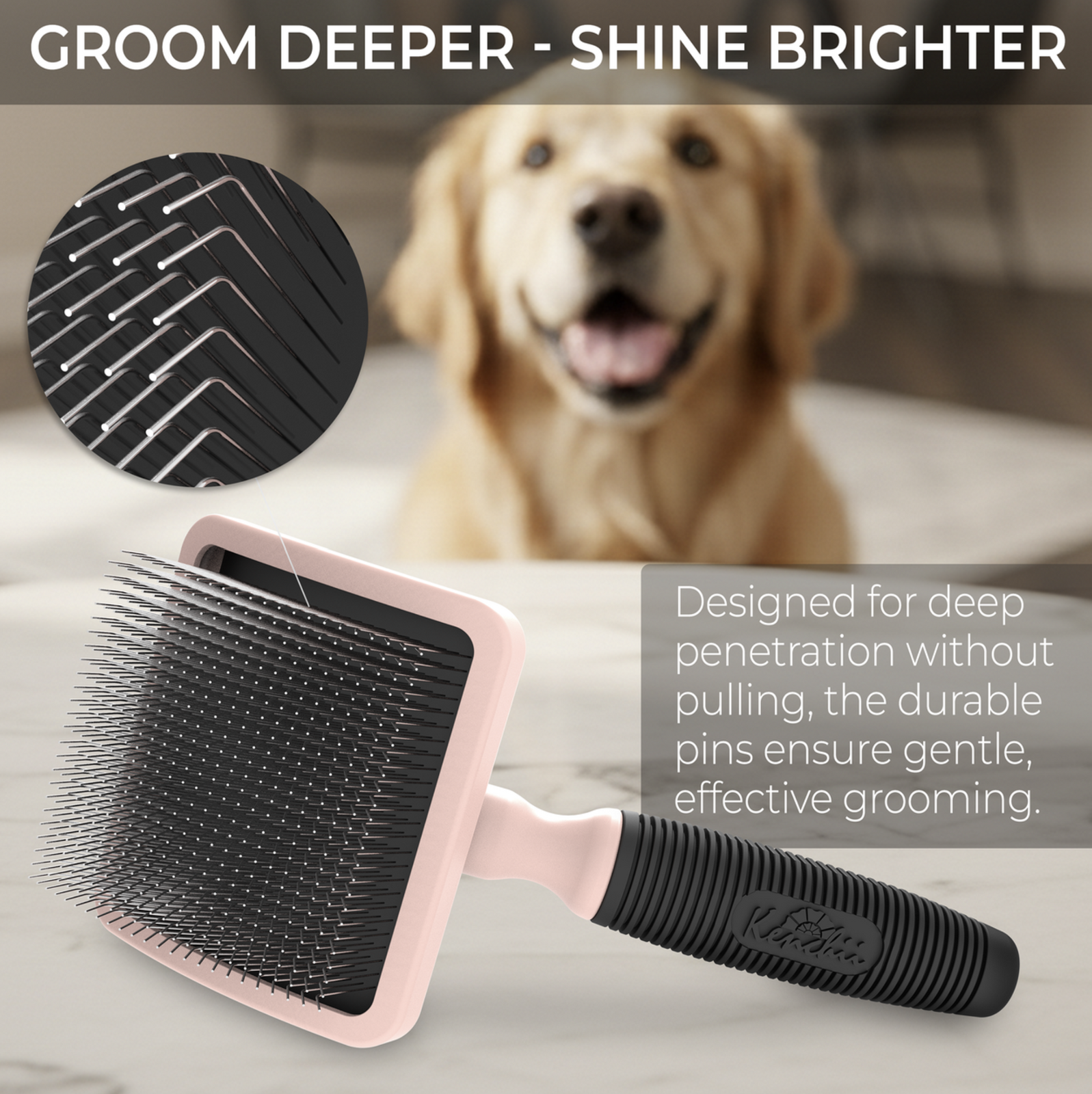 Perfect for high-maintenance and long-haired breeds like Labradoodles, Golden Retrievers, Poodles, and Persians, this versatile brush excels at daily detangling, deshedding, and maintaining a healthy, shiny coat.