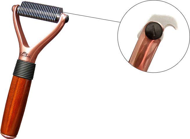 • Carefully designed rounded end blades glide through coats without skin irritation.