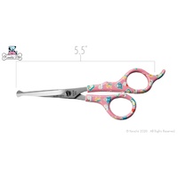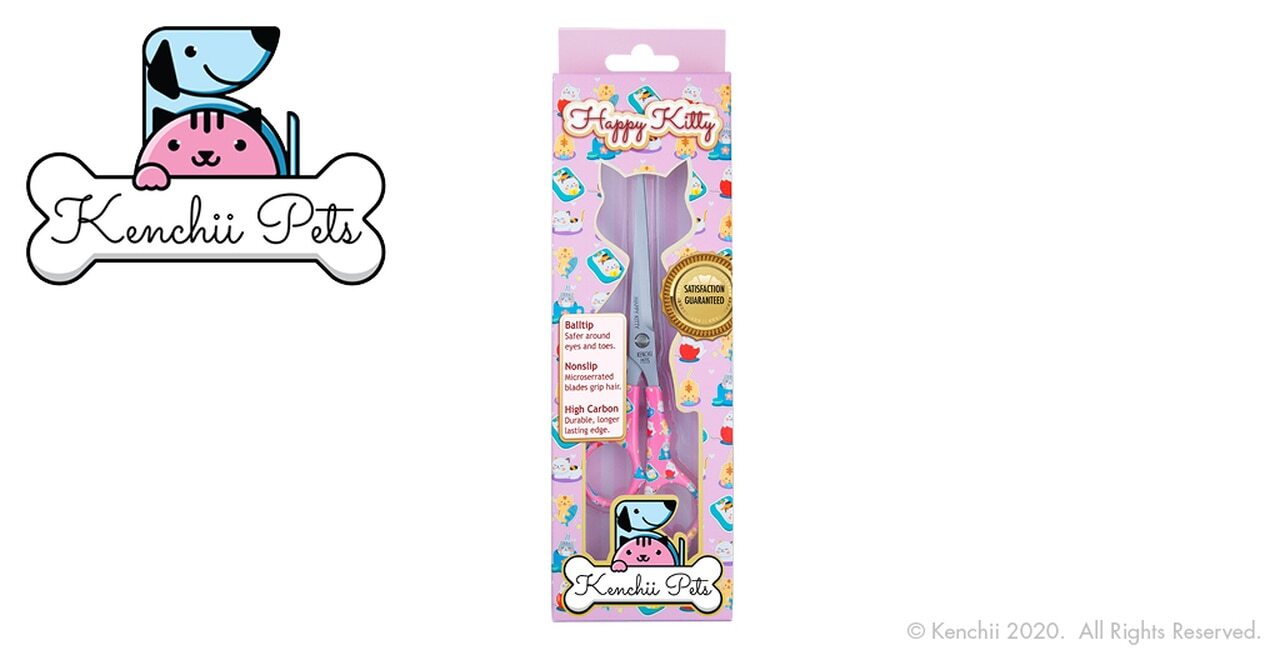 The Kenchii Happy Kitty Ball Tip Dog and Cat Shears are perfect for both the home groomer and seasoned professional. They’re made with high-carbon stainless steel for a durable and longer-lasting edge. The non-slip micro-serrated blades help prevent hair from slipping while you cut. They feature heart-shaped safety tips and a wonderfully smooth satin finish. These high quality shears feature a cute kitty pattern on the handles to bring a cheerful mood to your grooming sessions!