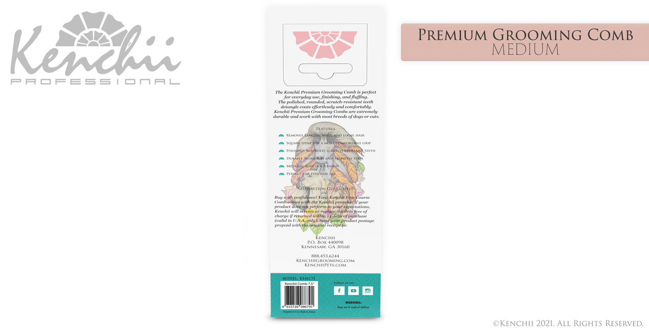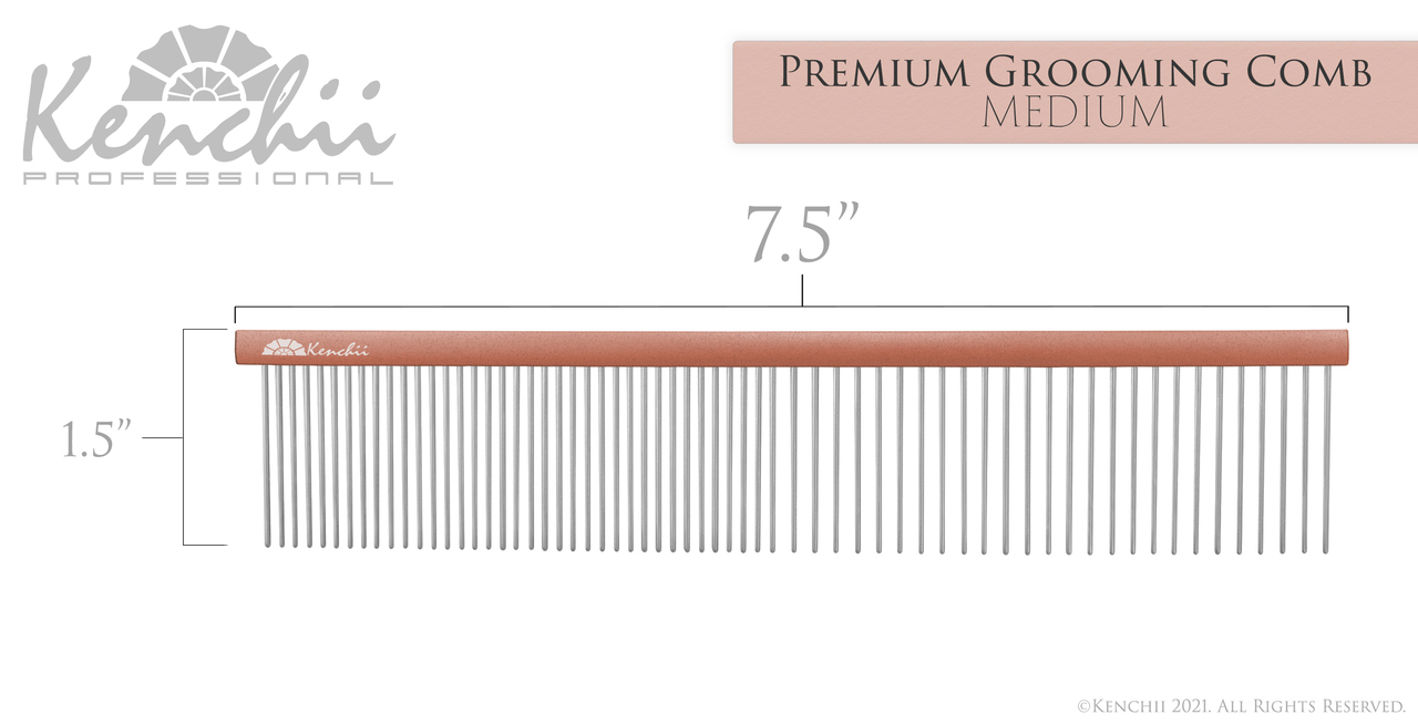 THE KENCHII PREMIUM GROOMING COMB IS PERFECT FOR EVERYDAY USE, FINISHING, AND FLUFFING.
