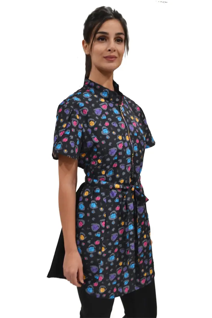 It’s the perfect functional garment for pet groomers, but with an added twist. Ladybird Line is where function and fashion meet and the Mini Paw Print Design Scrub Tunic is no exception.