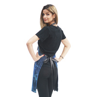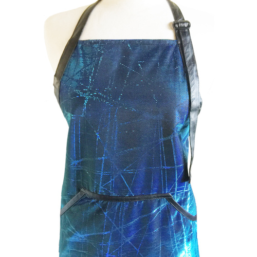 Ideal for Hair Stylists, Pet Groomers, Home and Kitchen. Blue color, Light weight, Water resistant, Bleach resistant, Sparkling material, Adjustable neck band, Faux Leather trimming, Deep front pocket. One size fit most.