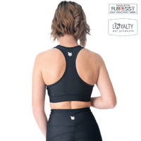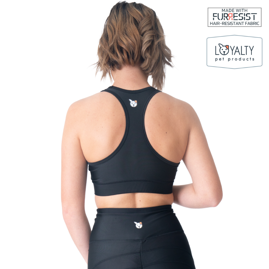 Black, Hair / Fur Resistant, Sports Bra. These High Performance sports bras are perfect for pet grooming, dog walking, working out or pet bathing. Pads are removable!