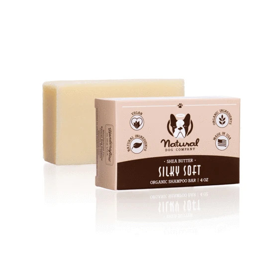 Natural Dog Company’s Silky Soft Shampoo Bar is a convenient grooming bar will moisturize and condition.