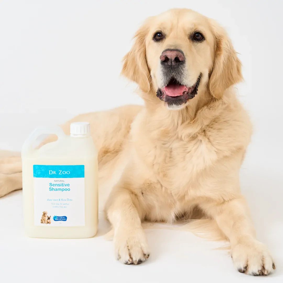 A Gentle, Soothing Shampoo for Sensitive Skin. Dr Zoo by Moo Goo Natural Sensitive Shampoo is specially formulated to care for sensitive skin with natural ingredients that cleanse without irritation. Ideal for pets prone to itchy skin, this shampoo uses coconut and glucose-based cleansers that are mild and non-drying, making it suitable for pets with even the most delicate skin. Enriched with Aloe Vera, Colloidal Rice Bran, and Allantoin, this shampoo helps to nourish and calm the skin while maintaining a healthy, soft, and shiny coat. Suitable for: Dogs, puppies, and most pets with sensitive or itchy skin Free from: SLS, parabens, and harsh chemicals pH Balanced to match your pets skin Safe if ingestedformulated with pet-safe ingredients This formula is designed to relieve discomfort from skin irritation and help maintain a healthy coat. Its perfect for regular grooming and provides soothing relief for pets with allergies or dry skin.