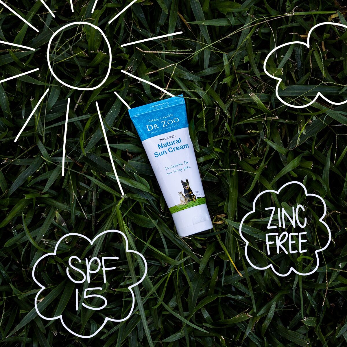 Natural Protection for Your Pet’s Skin. Dr Zoo Natural Zinc-Free Sun Cream offers safe, effective sun protection for your pet, using a combination of edible oils and Titanium Dioxide to provide SPF 15 protection. This formula is free from zinc, which can be toxic to pets when ingested, making it a safer alternative for your furry friend. Pets with light-colored noses, thin fur, or those who love lounging in the sun can benefit the most from this sun cream, as they are more prone to sunburn, just like us. Key Features: SPF 15: Provides 94% protection against UV rays Zinc-Free: Safe for pets if ingested Suitable for: Dogs, cats, and other pets Ideal for: Light-colored noses, thin fur, or sun-loving pets Safe ingredients: Made with edible oils for peace of mind