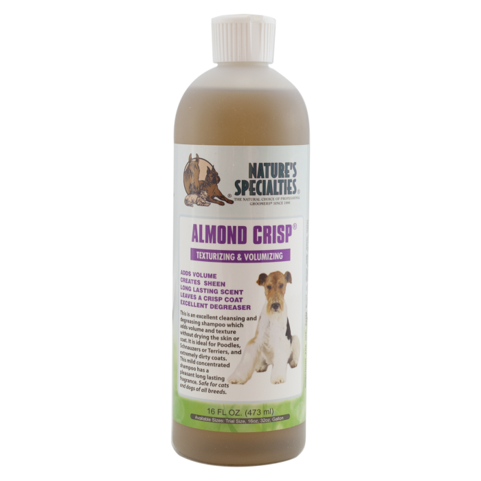 Almond Crisp Shampoo by Natures Specialties is a great shampoo for texture and body and gives the coat more form so scissoring is easier.
