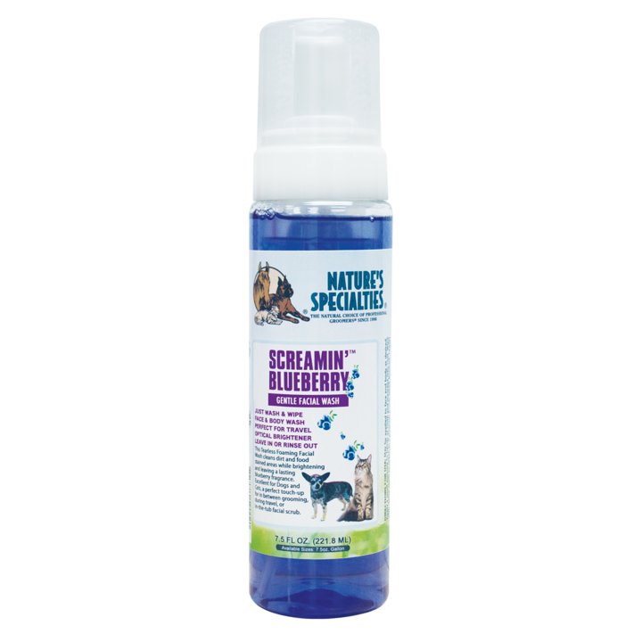This Tearless Foaming Facial Wash cleans dirt and food stained areas while brightening and leaving a lasting fragrance. Excellent for Dogs and Cats, a perfect touch-up for in between grooming, during travel, or in-the-tub facial scrub.