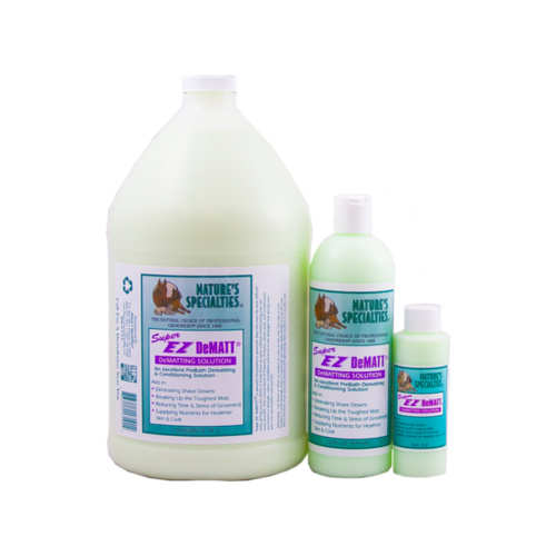 This product is specially formulated to penetrate deep into even the most difficult mats, giving you the ability to break them up easily without overstressing your pet (and yourself. The revitalizing blend of vitamins, proteins, amino acids, and conditioners we use are known for their ability to detangle, repair, strengthen and bond to the damaged hair giving your pets coat that healthy look and feel.