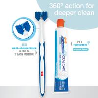 Advanced Oral Care Triple Action Dog Dental Kit features a wrap-around toothbrush that cleans three sides of your pup's mouth at once, leading to reduced plaque and tartar.