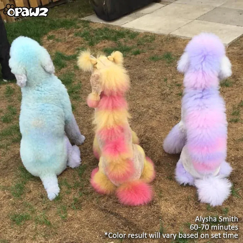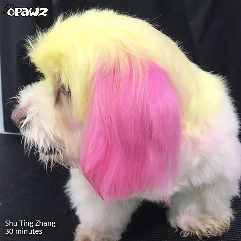 • Usually, the hair on the dog’s ears and tail are especially oily, and can have different textures from other parts of the dog, and therefore might yield a slightly different color result compared to the rest of the body. We recommend using the deep cleanse shampoo before applying color shampoo for optimal results, and using the color shampoo continuously for enhancing and maintaining the result.