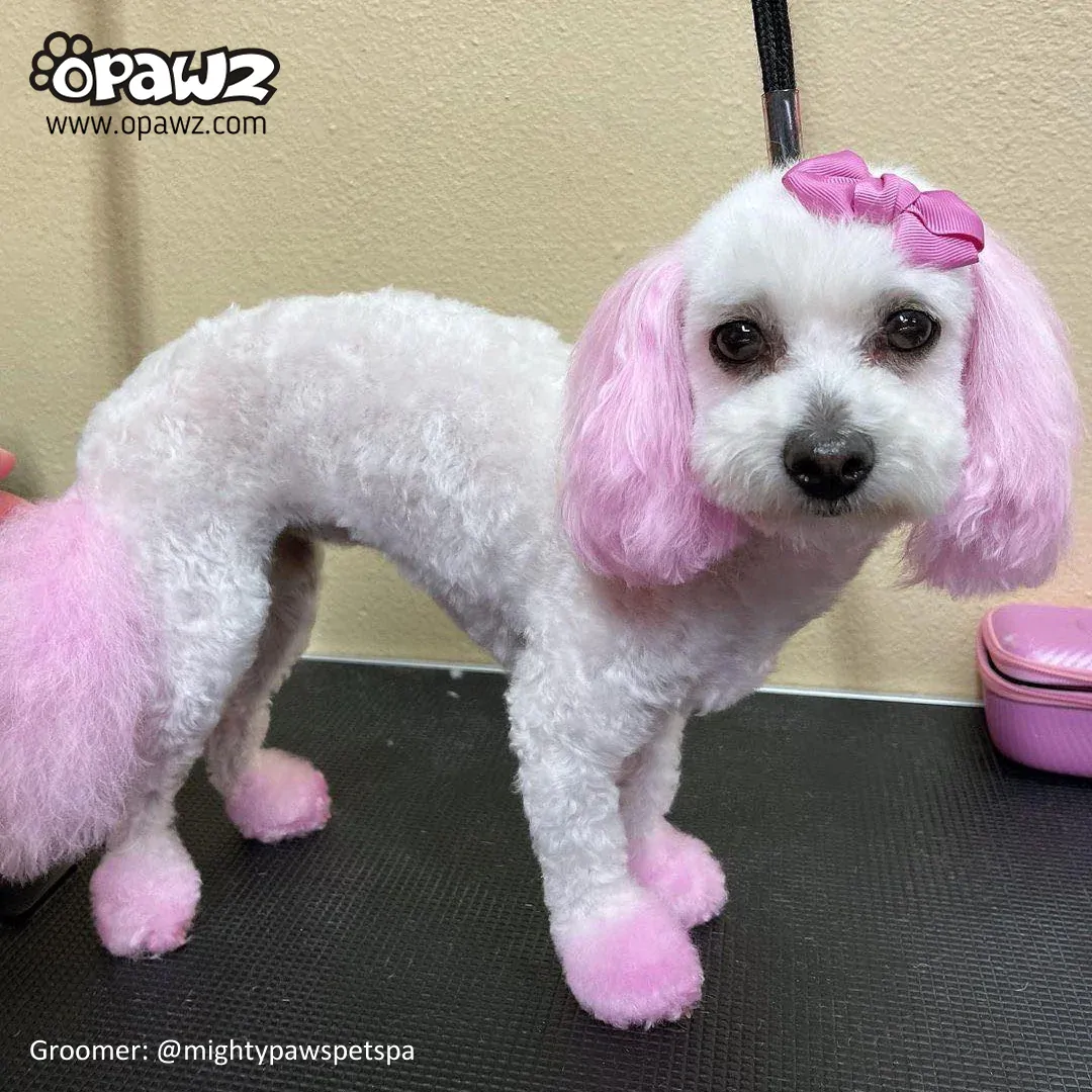6. Some dogs’ ears will take color differently due to differing hair textures, and will be noticeable especially with the light color dyes such as charm pink and tender green.
