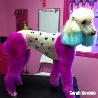 For example: to color a toy poodle with 3cm long medium density fur from head to toe will require around 100g/4oz of dye. A standard poodle has more fur in comparison, with also 3cm fur will require around 10-11 bottles of the 4oz permanent dyes on dry coat.