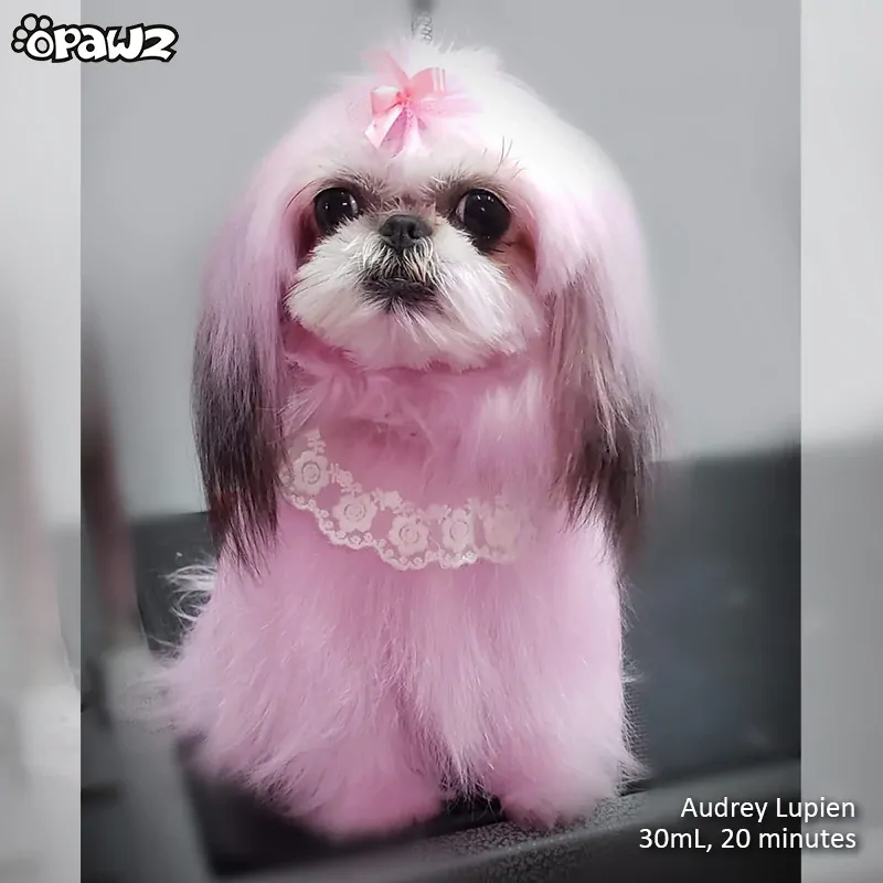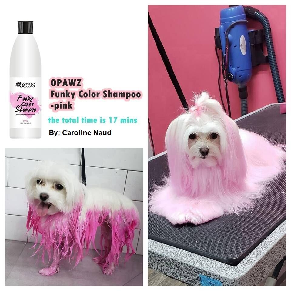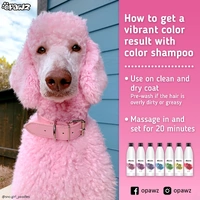 • Usually, the hair on the dog’s ears and tail are especially oily, and can have different textures from other parts of the dog, and therefore might yield a slightly different color result compared to the rest of the body. We recommend using the deep cleanse shampoo before applying color shampoo for optimal results, and using the color shampoo continuously for enhancing and maintaining the result.