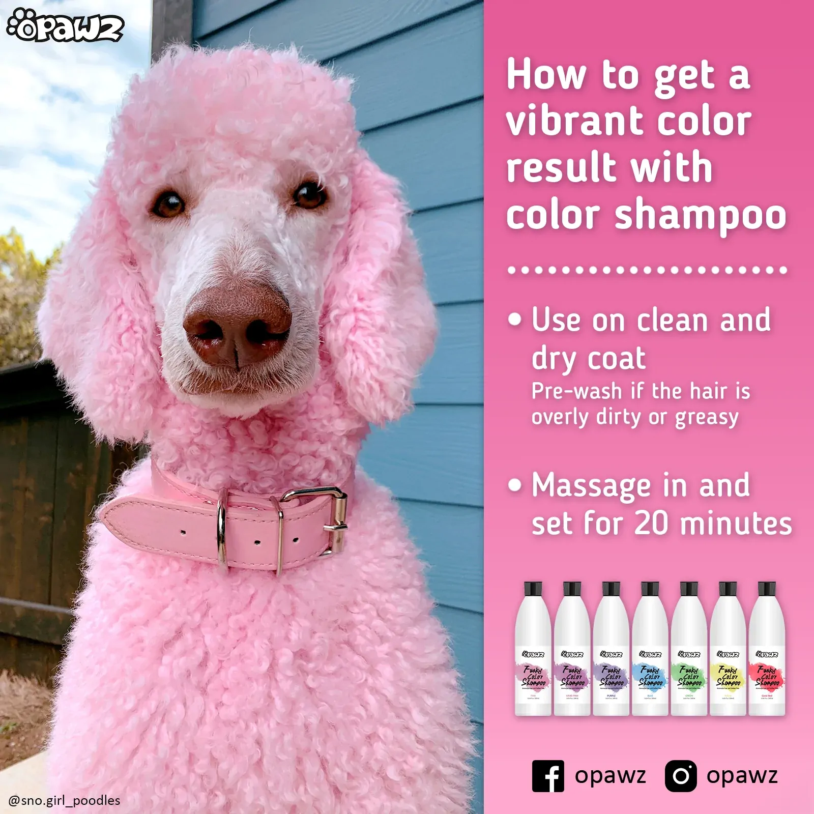• The Color Shampoo is a pastel tint, which does not have the ability to cover uneven yellow stains on hair with first use. For the best results, use the OPAWZ Whitening Shampoo to remove yellow stains prior to using the Color Shampoo.