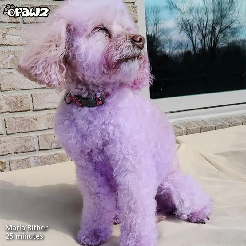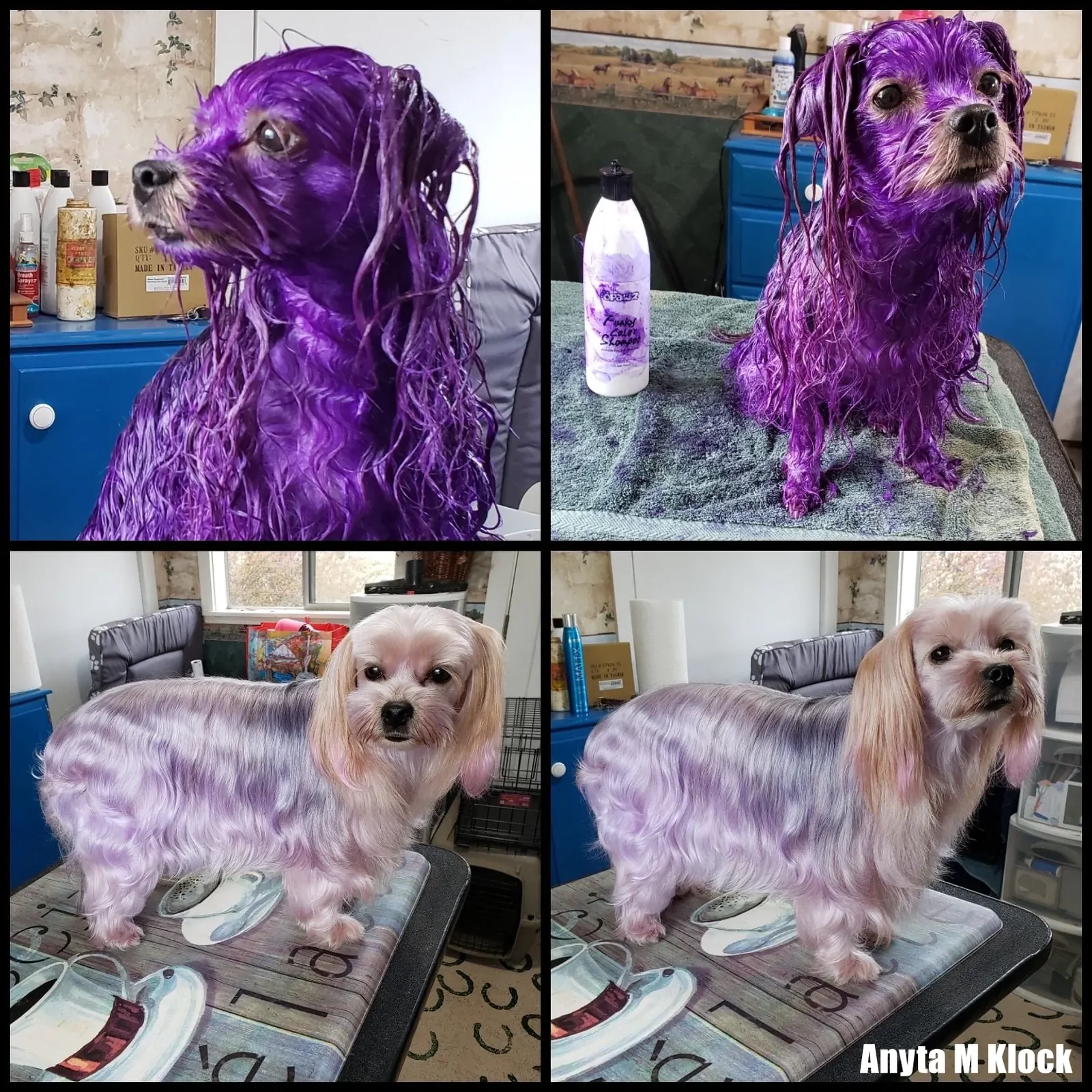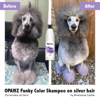 • Usually, the hair on the dog’s ears and tail are especially oily, and can have different textures from other parts of the dog, and therefore might yield a slightly different color result compared to the rest of the body. We recommend using the deep cleanse shampoo before applying color shampoo for optimal results, and using the color shampoo continuously for enhancing and maintaining the result.