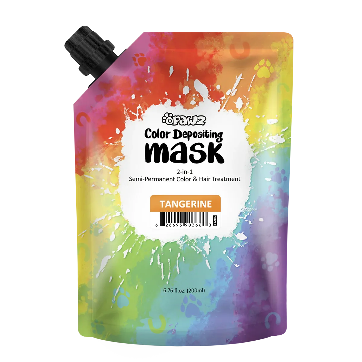 The Opawz Semi Permanent Colour and Conditioning Mask deposits color and also creates a soft, silky coat, all in one go! Can be used on all pets that can be bathed, best suited for white and light-colored coats. Color results may vary depending on set time, original color, porosity, and type of coat. Use in consecutive baths for more vibrant color and longer-lasting results.