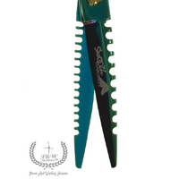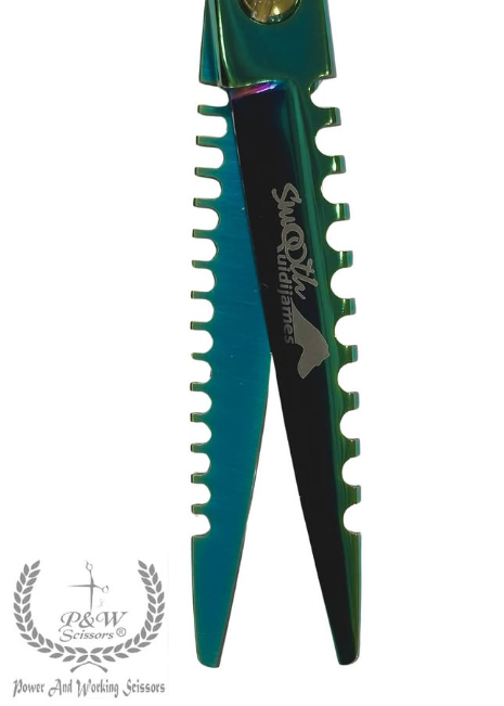 Unique straight scissors and double-sided trimmer in one by P&W Scissors (by Nick Kontos), the Hulk Smooth QuidiJames model. Designed in cooperation with Italian groomers - Chiara Piccionetti and Nicol Pisani. Made of good quality steel, coated with an iridescent coating in green.