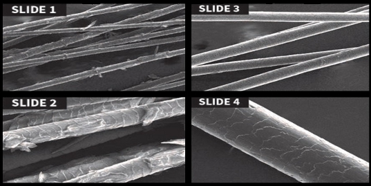Damaged coats trap shedding undercoat or snag hair leading to tangles and mats. The black and white imagery shown below really provides a sense of how open cuticles snag and hook like Velcro, fighting the groomer while brushing.