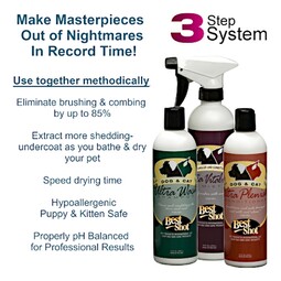 One must acknowledge that de-shedding is not some kind of magic or sorcery captured in a bottled for us to use. It's based on scientific method, research, and fact. In fact Best Shot's 3-Step system was never originally meant to be used soley for detangling and shedding, but rather as a mindfully formulated turnkey system for professionals to simply save time and effort with reliable results. It can benefit every client animal that visits the grooming salon.