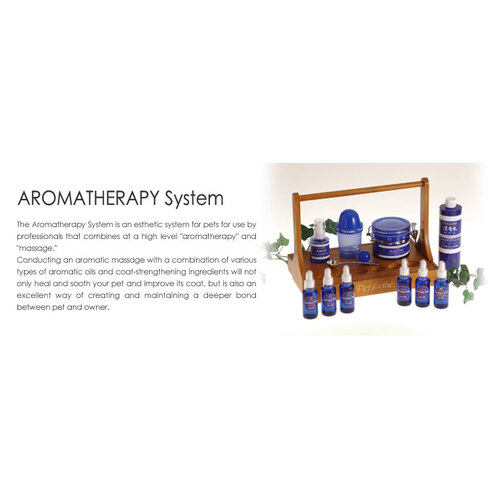 The aromatherapy system is an esthetic system for pets for use by professionals that combines at a high level aromatherapy & massage.
