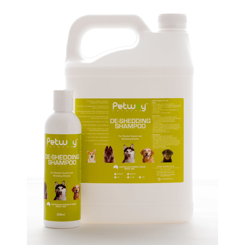 Petway Petcare De-Shedding Shampoo is a naturally based shampoo for use on double-coated and shedding breeds. It has been formulated to help release the undercoat and assist in the do-moulting process. It contains natural essential oils to stimulate follicles to release hair while moisturising and hydrating the skin. Has a lovely fresh lily and pomegranate fragrance.
