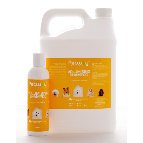 Petway Petcare Volumising Shampoo is a naturally based shampoo for use on coats that require added volume and body. It contains natural proteins to add volume and body to the hair shafts giving the coat a fuller look. It revitalises the coats appearance and adds volume, shine and lustre while moisturising and hydrating the skin. Has a yummy kiwi fruit fragrance.
