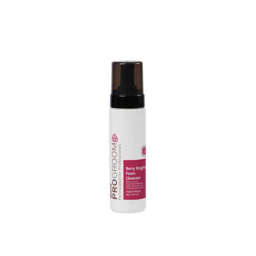 Berry Bright is a gentle foaming cleanser that brightens & leaves a wonderful berry fragrance with its safe tear-less sulfate free formula gentle and kind for those sensitive areas Use as a safe facial whilst shampooing or for touch-ups in between grooming. Now there is no need to plop the pup into the bath when their face is the only dirty spot Berry Bright as is a perfect add on service for a groomer to increase those bottom lines.