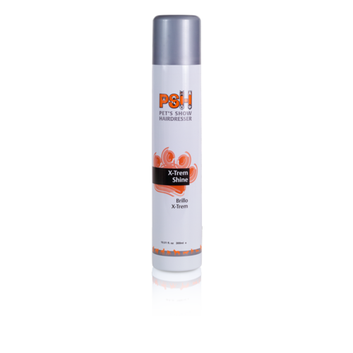 The new PSH X-Trem Shine has been created as a response to the necessity of giving your dogÕs coat a lustrous shine. Its moisturizing components and nutrients not only give extraordinary shine, but also cover the cortex of the hair strand, providing shine, elasticity and softness. IT DOES NOT CAUSE GREASY HAIR. It can be used on all breeds, but it is particularly recommended for dogs with long, medium or dense hair that requires frequent brushing in order to obtain an extremely shiny coat. It is recommended for use on dry, clean hair. It facilitates brushing. It enhances, nourishes and moisturizes, providing luminosity. INSTRUCTIONS FOR USE: Spray generously on dogÕs hair from a distance of 30cm. before drying, ironing or brushing. (SPS106)