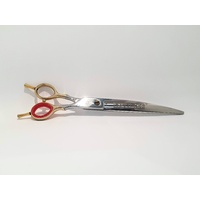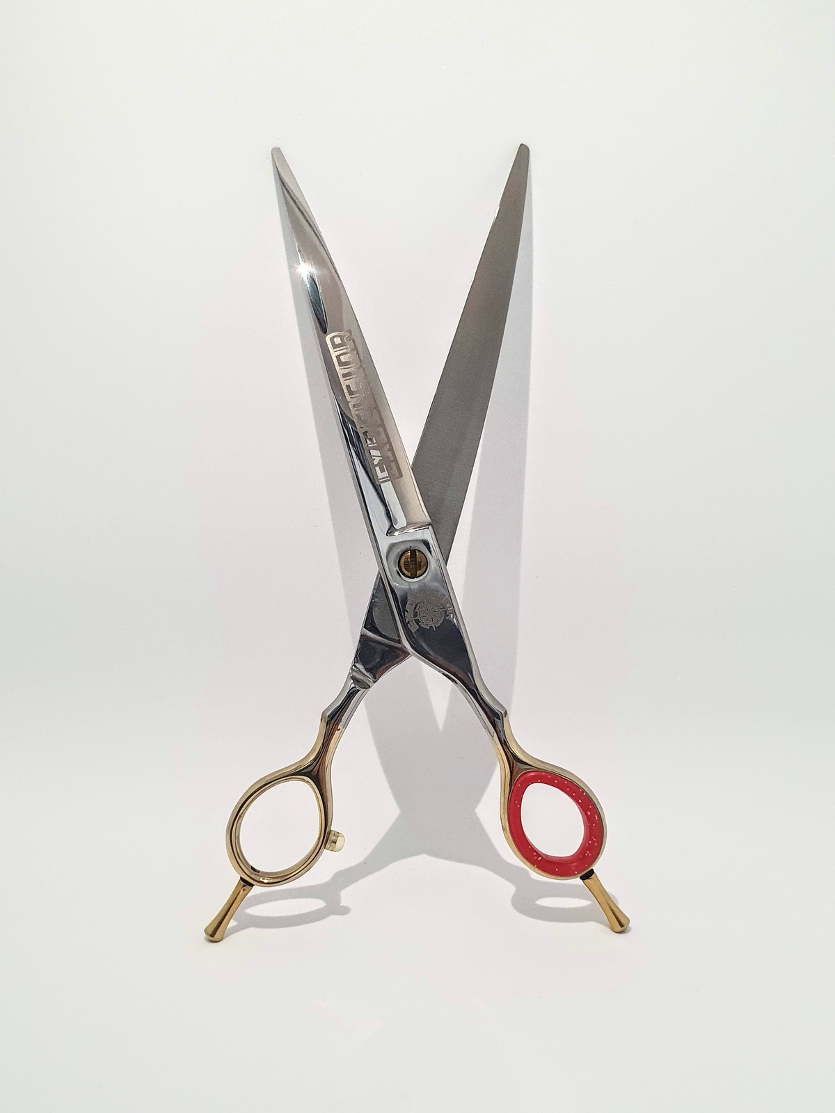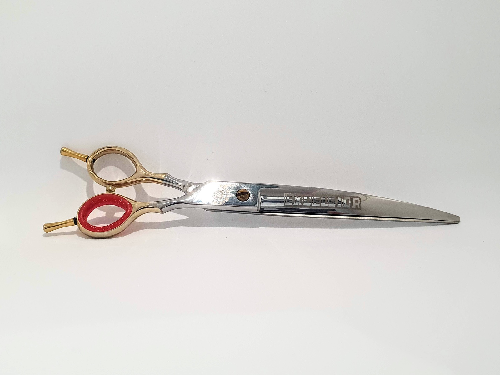 The Excelsior Scissor range offers a wide blade scissor with a short ergonomic symmetric handle to ensure comfort when working with this scissor. The Excelsior Curved scissor is perfect for circular haircuts in places such as the Face, Feet and Tail. They have a very sharp cutting edge ensuring smooth cutting and wide convex blades. The Excelsior range is a strong finishing scissor that is great for everyday use and perfect for thick coat dogs and is highly recommended for all groomers.
