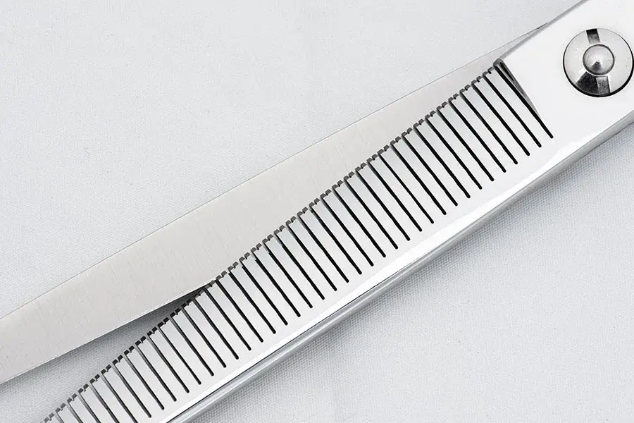 These blending shears have additional micro serrated teeth on the end of each individual tooth, as these additional teeth help ‘grab’ the coat as the shear’s blades are closing and allowing the cut to be more precise.
