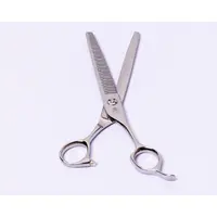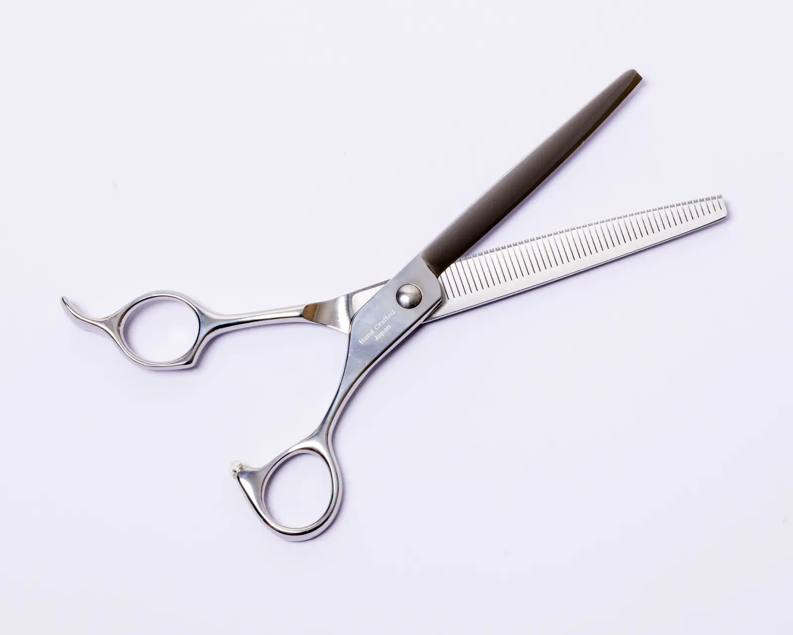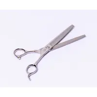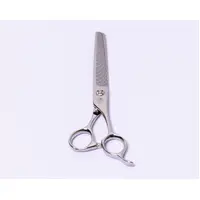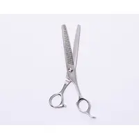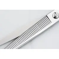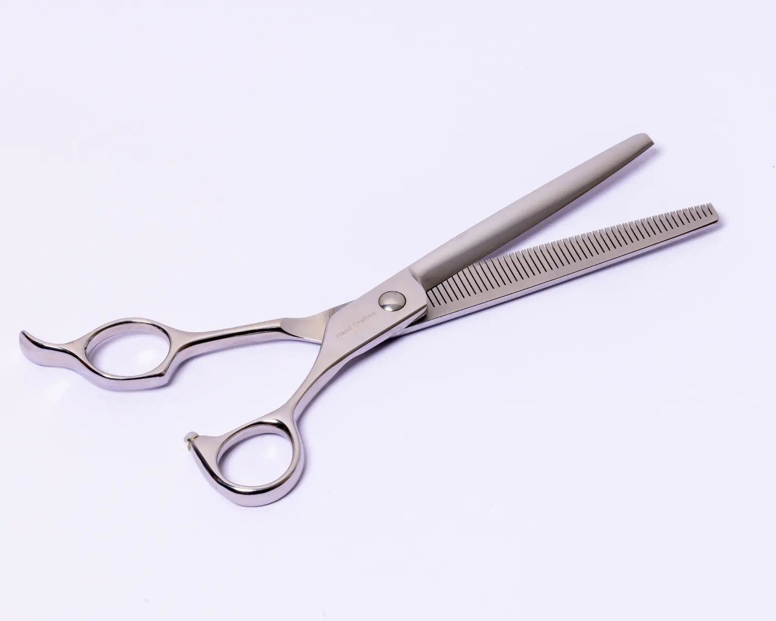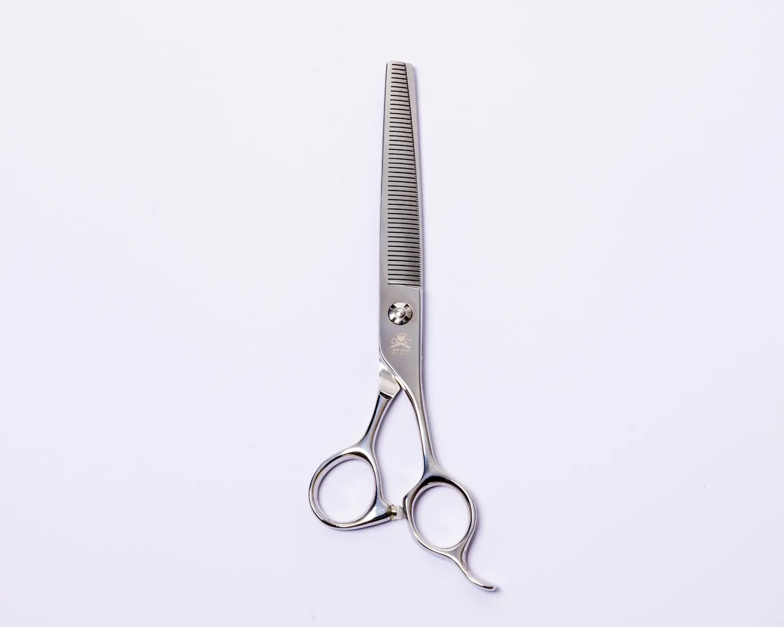 Introducing the newly designed Saizen Tokyo Professional Pet Scissors. This amazing straight, offset handle, 7.0 inch, 50 teeth, Blender/Thinner has a 50-60% skip rate. Therefore, these scissers are easy to use with a soft finish that can be used to blend fur.