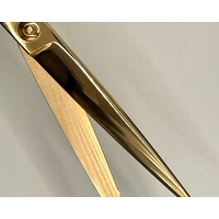 The Saizen Tokyo professional pet grooming shears in vibrant rose gold 7.0″ are made with an ergonomic offset style handle and high quality Japanese 440c Stainless Steel which is titanium plated.