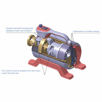 Use a stream of air warmed by flowing over the motor to effectively blow water off the coat to cut drying dramatically, it also equipped with additional heating unit.