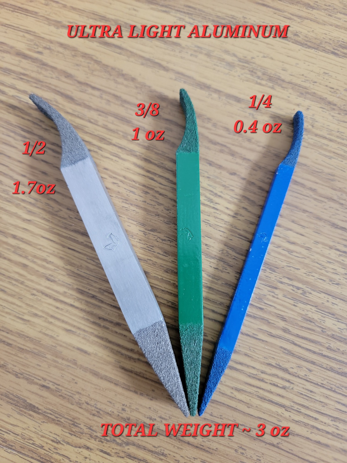 What makes these tools unique is the grip that is permanent, not just a coating. They are hand crafted and professionally coated in colors according to size to make it easy to grab the right one out of your tool kit. They feature two textured ends with plenty of grip, and one side is curved to fit your thumb perfectly. left or right handed.