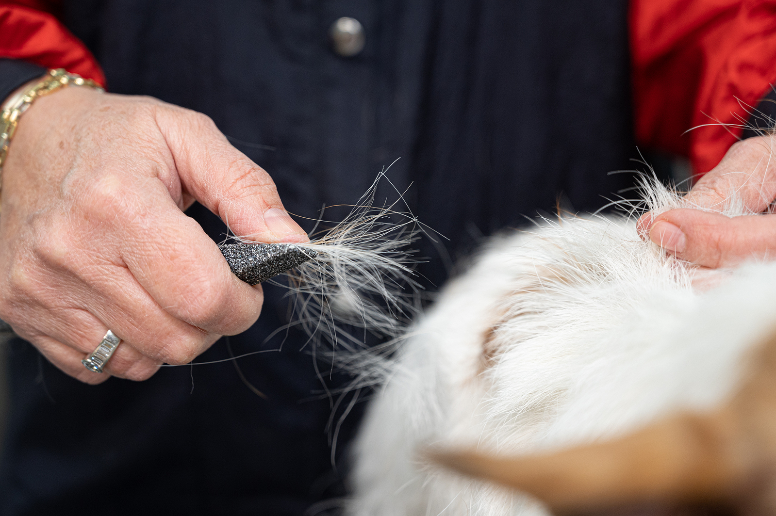 The Show Tech Comfy Stripping Stick works like a stripping stone. It’s ideal for hand stripping and sculpting difficult wire-coated breeds and if every hair is important and needs to be stripped from tip to root without damaging the coat. You will be able to pull any individual hair with precision and ease and this even in the most delicate areas. As a result, the new coat that grows back will have the original wire coat tecture , with its perfect deep and vivid colour