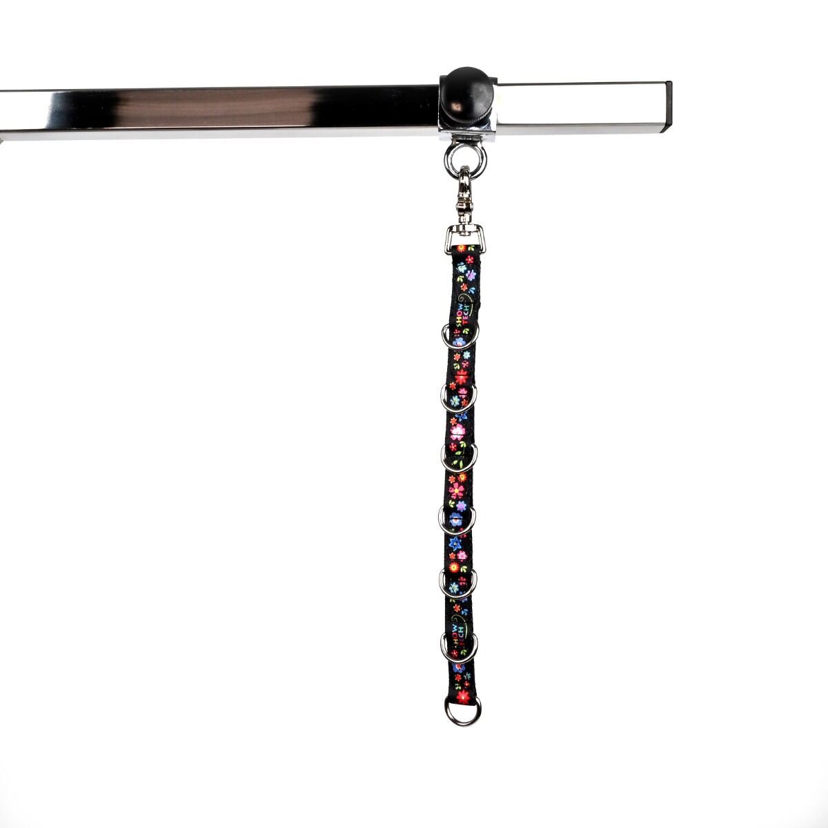 The Show Tech Flower Power Extension Strap is an indispensable tool for your grooming routine. It enables you to adjust the control post on your grooming table or bath to its maximum height, allowing you to easily manage your neck aid via the D-rings. No more constant adjusting of the control post—this strap minimizes the wear and tear that can build up over time, making the process smoother and less of a strain.