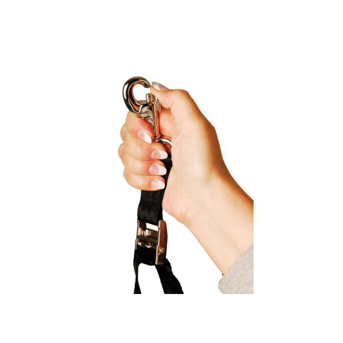 These high quality nylon straps are furnished with high quality clasps which are easy to use (simply press the release button with your thumb) and will not slide open under load. Simply the best restraint system available.