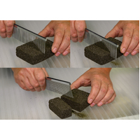 A stripping stone is extremely safe to use and ideal if you are afraid of using a stripping knife. Due to their slightly less wear-resistant characteristic, stripping stones will wear away with use. This makes them easy to cut into the right size for your hand. Because they are light and can be cut to size, these stones ensure ergonomic use. If you are looking for a denser and more lasting version, a groom(ing) stone might be the answer!