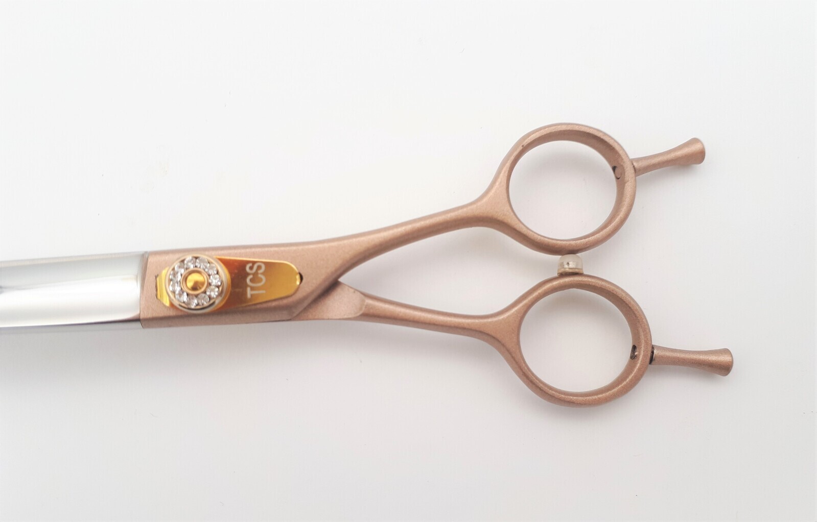 TCS 7.5" Super Curved Pet Scissors / Shears with Jewel Adjustment Screw - Gold