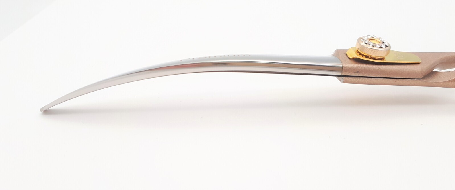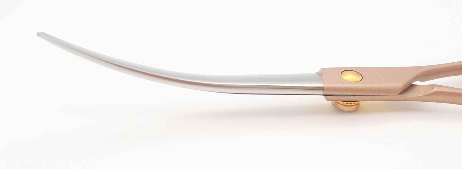 Made from 440c Stainless Steel.  These quality Super Curved Pet Grooming Scissor are ideal for all skill levels