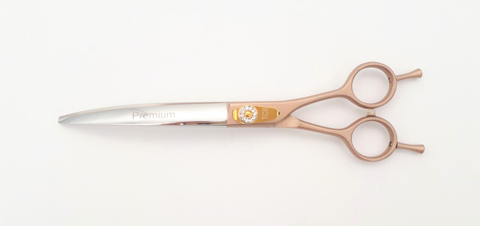 TCS 7.5" SUPER CURVED SCISSORS WITH JEWEL ADJUSTMENT - GOLD - PREMIUM SERIES