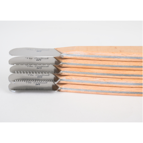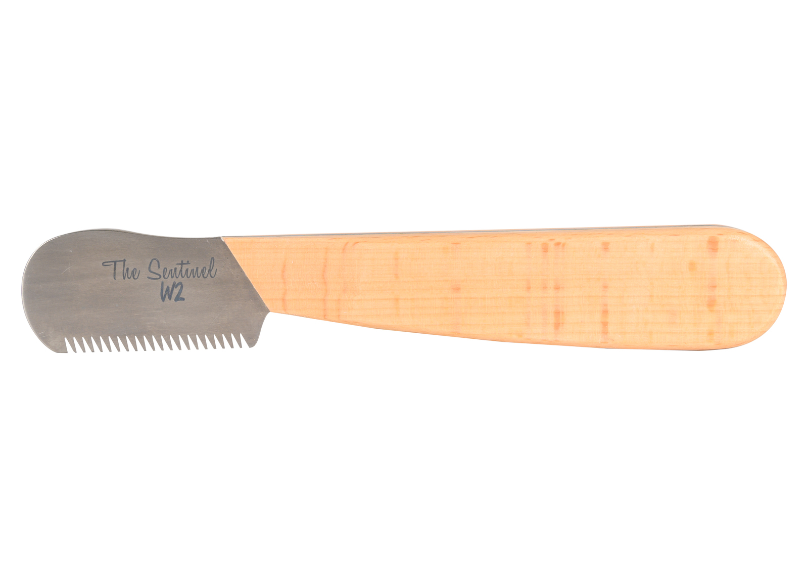 The Sentinel Stripping knives are handmade and manufactured in Belgium under supervision of the famous breeder and groomer Rony Demunter. The materials used are a high-quality metal alloy which is stronger and lighter than other knives and very light - each knife weighs under 30 grams. The Beech wood used to produce the handles comes from sustainable European forests and the varnish is FCS approved as a safe A+ for the environment.
