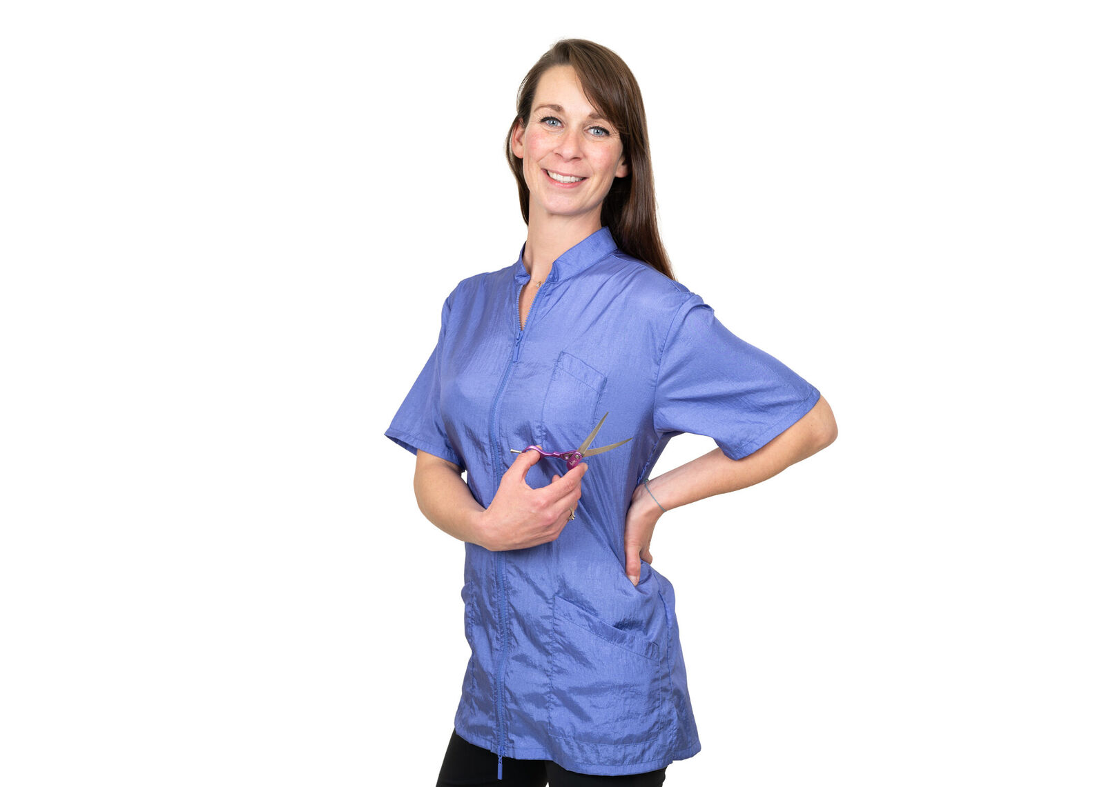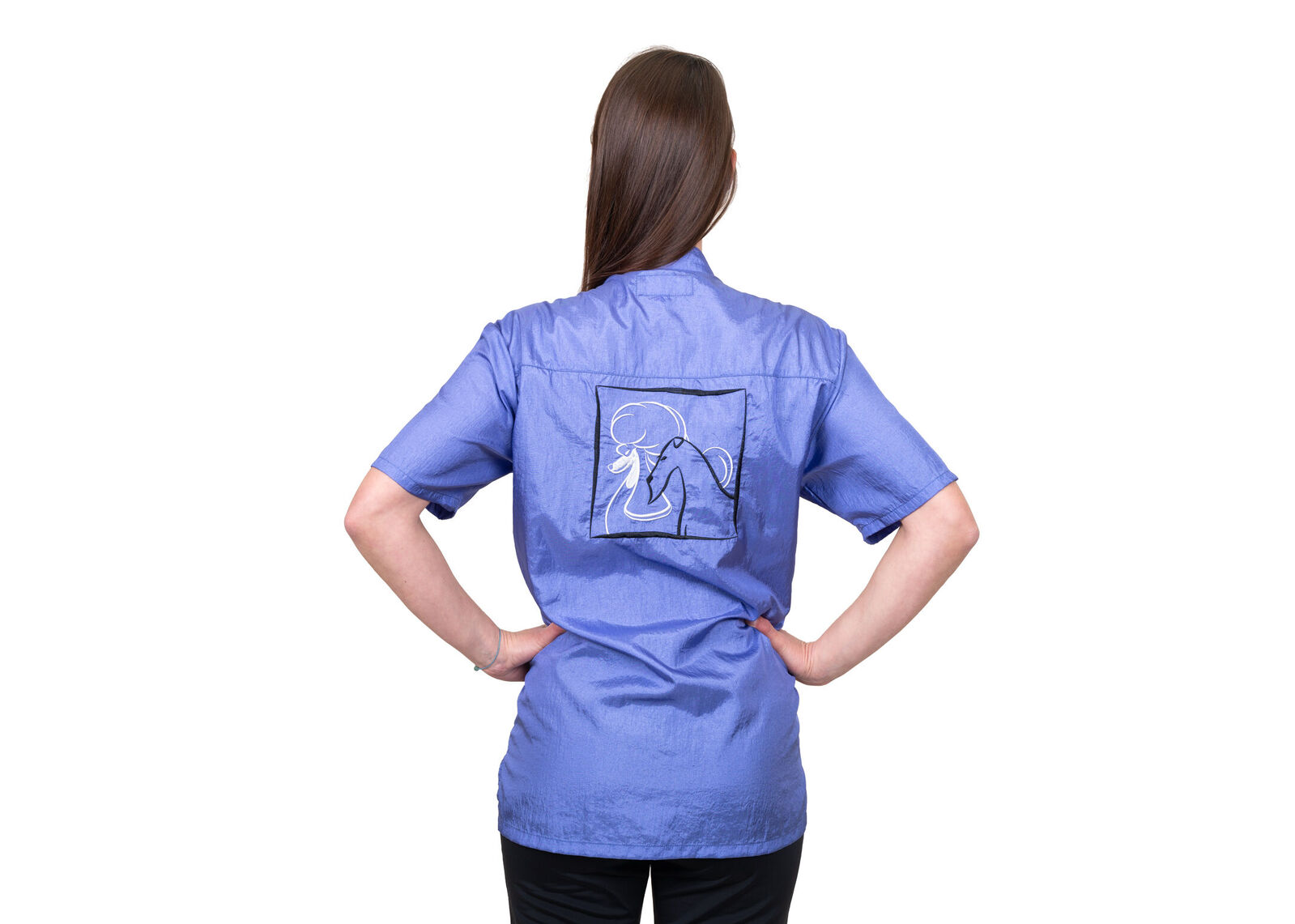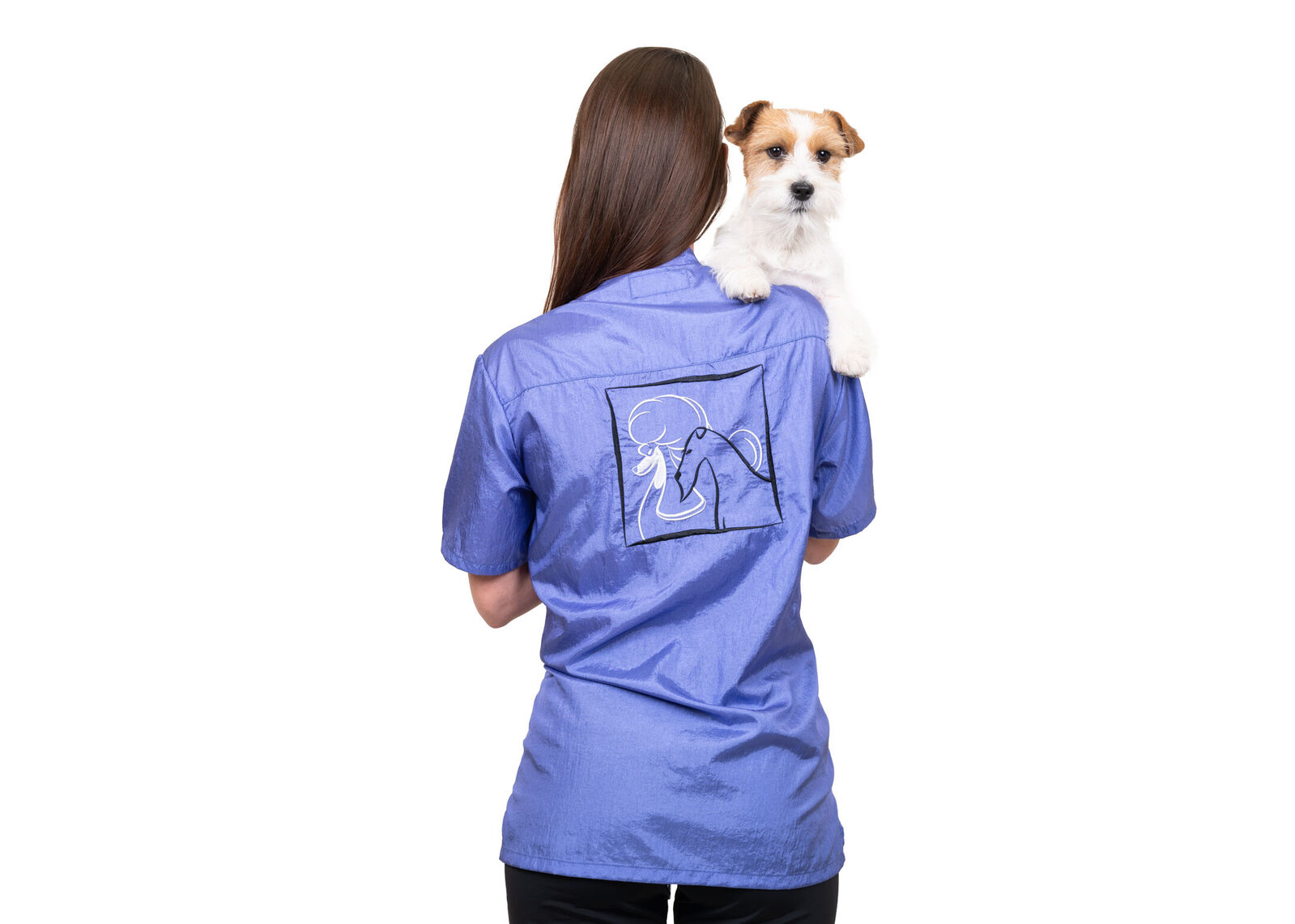 Highlighting your dedication to dog grooming, our shirt features an exclusive, handcrafted drawing on the back. This eye-catching design showcases your commitment to canine care while adding a touch of personal expression to your work attire.In addition, the Tikima Lavezzi shirt is made with hair-proof material, ensuring that hair will not stick to it during grooming sessions