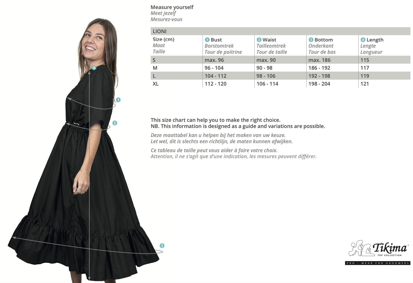 The Tikima Lioni Dress: A fusion of comfort, style, and functionality for dog groomers.