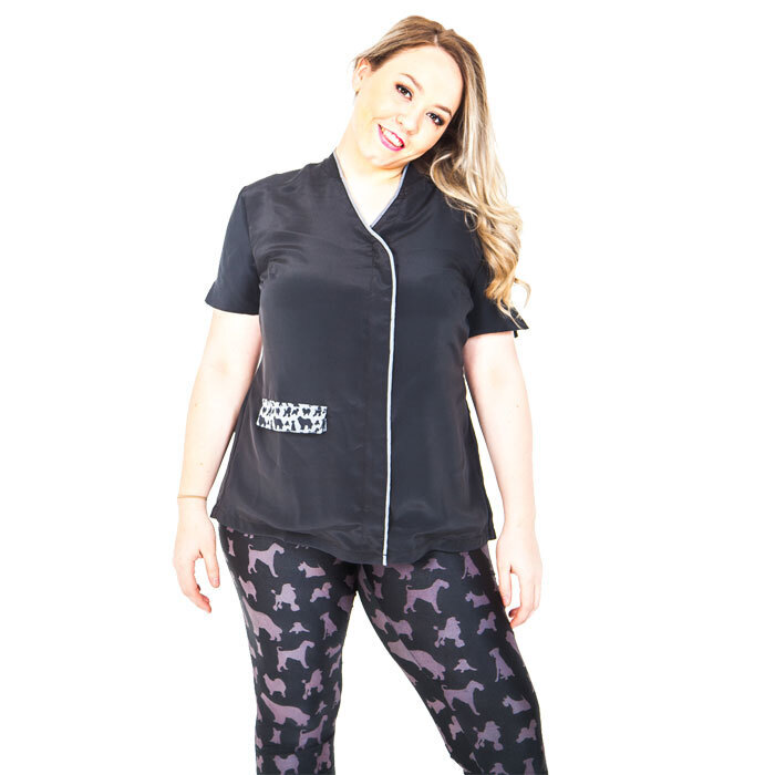 This top is designed for groomers by groomers it’s made using hair resistant material, hidden zip and reinforced pocket so it can withstand the trials and tribulations of any grooming salon.
