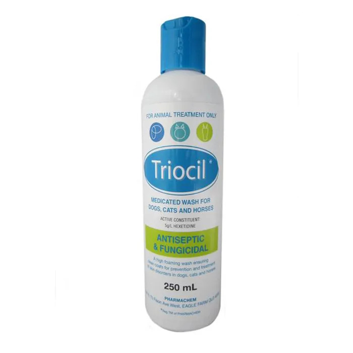 Triocil is a high-quality antiseptic and antifungal foaming wash for the relief of various skin irritations of animals. Routine use will not only ensure a soft lustrous coat but prevent skin irritations.