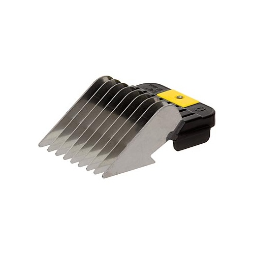 Wahl #5 -16mm Stainless Steel Guide Comb* Better hair-sliding performance (compared to conventional attachment combs).* Better hair feeding.* Color-coding for easy comb size identification.* Fits over #9, #10, #15, #30