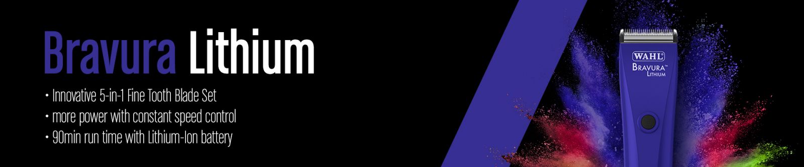 The Wahl's Bravura Lithium Clipper combines the power and durability of Lithium Ion with the adjustable 5-in-1 blade to give professionals everything they need in a lightweight cordless clipper.
