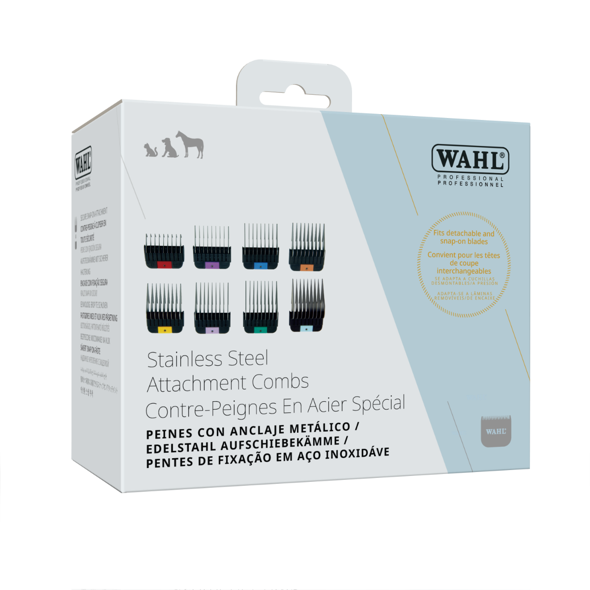 Gone are the days of the plastic guide combs popping off half way through a cut, bending and snagging - the NEW Stainless Steel Attachment combs are finally here, The Wahl SS Attachment Combs are stronger and more capable, handling thicker coats - even Poodle. The Combs are availabe in a variety of length from 3mm to 25mm.